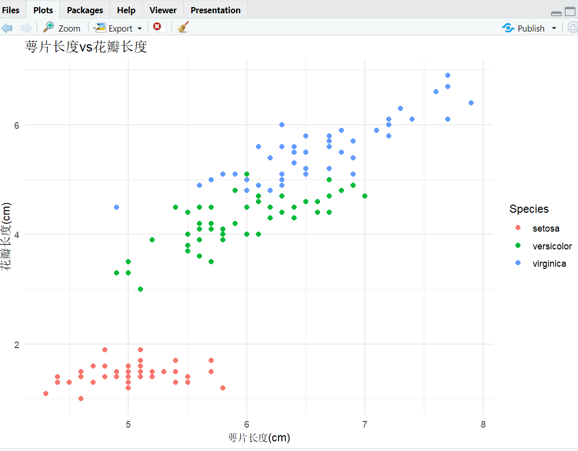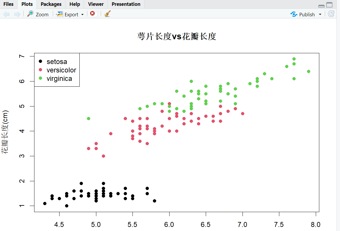 # 示例:绘制iris的Sepal.Length与Petal.Length散点图