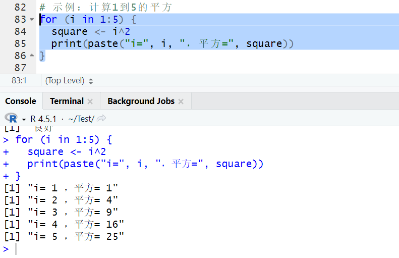 for (i in 1:5) { # i依次取1、2、3、4、5