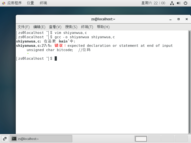 2.使用Linux下VI编辑器编写hello world C语言程序,使用GCC编译器编译,并输出结果。