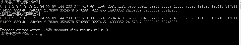 printf("Recursive function calculation result is:%ld\n",Fib_rec(n));