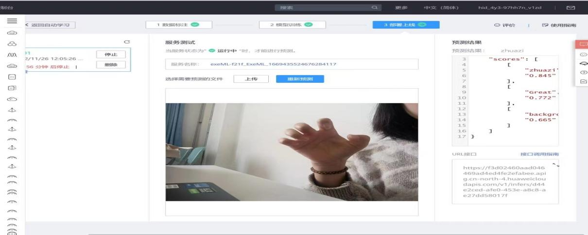 5.自定义一个自己的专属手势(zhuazi),加到数据集中重新训练模型。在线部署并进行预测自己的专属手势。