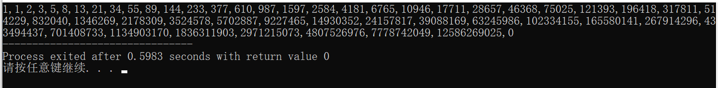 1.C语言编程实现斐波那契数列前50项的计算结果,程序如下: