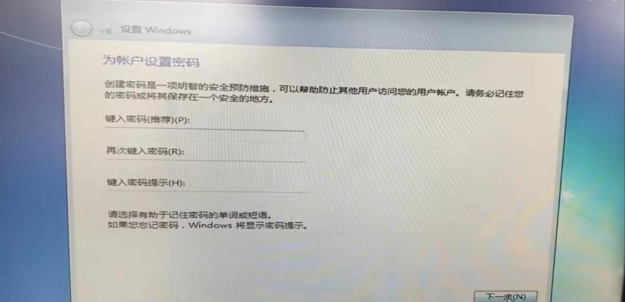 (2)将制作好Windows7系统的U盘插到电脑主机的USB接口,开机,按快捷启动键F12,选择”USB Storage Device”选项 ,等待系统加载,接着依次点击“下一步”、“现在安装”,等待安装程序启动,点击“下一步”、“自定义安装”,等待系统启动Windows,设置用户名、密码(可以暂不设置)等,完成设置,安装完成。(过程图如下)
