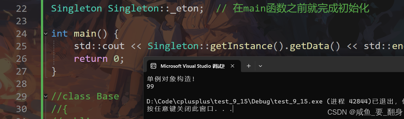 Singleton Singleton::_eton; // 在main函数之前就完成初始化