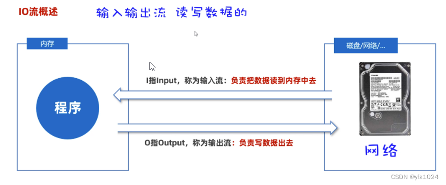 IO流的作用:就是可以对文件或者网络中的数据进行读、写的操作。如下图所示