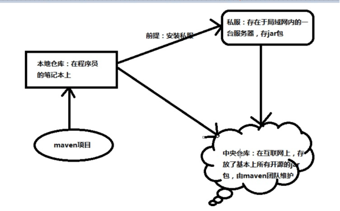 仓库分为:本地仓库、第三方仓库(私服)、中央仓库。