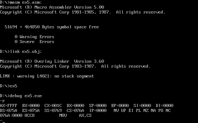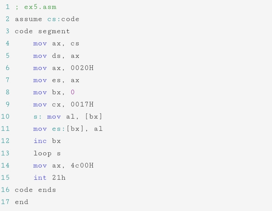 (1)填空ex5.asm源代码