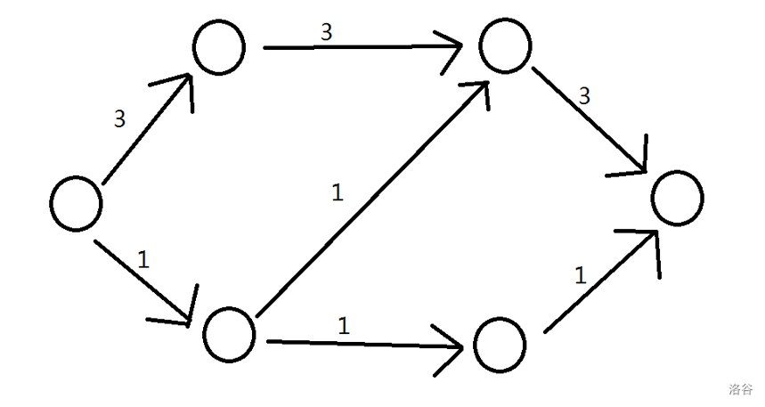 前面都是不严谨的话。我们用这个图片稍微理解一下,该有向图被称为流网络。