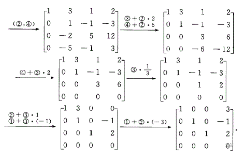 为什么可以这样判断?因为每一列到最后都只有 可能会不等于 。其余列都是已经消除或者缺少主元(本来就一个也没有)。