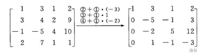 然后,枚举一个 ,即主元。再找到一个 ,满足 。将 行交换,显然,此时 了。我们就用第 行,对除此之外的行进行消元,也就是把第 列上的值全部变成 。