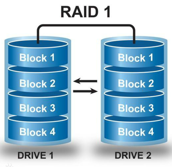 RAID-1镜像卷,写入性能一般、读取性能快、有容错机制,但磁盘有50%浪费
