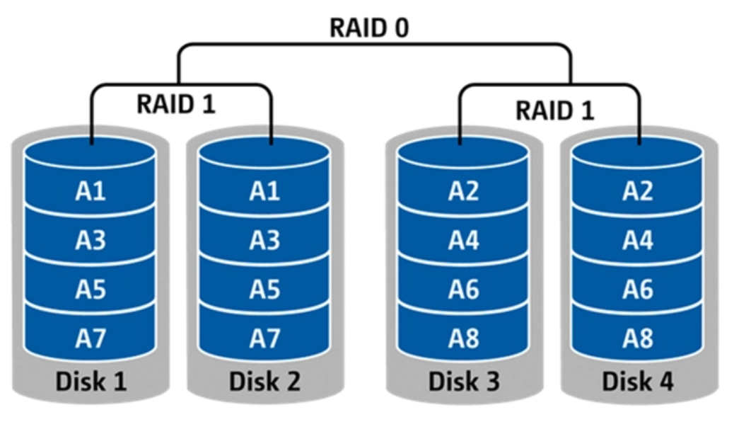 ⒉、保证数据安全。(硬盘其实非常的脆弱,它经常会坏掉。所以有了RAID这个东西。它的目的是将好几个硬盘合并在一起,就算硬盘坏了一个,剩下还有好几个硬盘是正常的,这样服务器还能正常提供服务。保证磁盘高可用。)