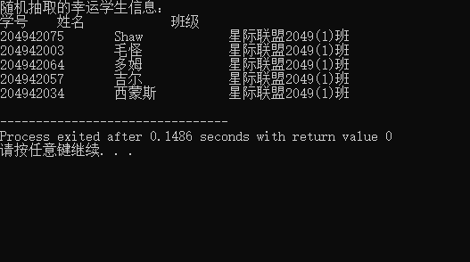 printf("%d\t%s\t\t%s\n", luckyStudents[i].id, luckyStudents[i].name, luckyStudents[i].className);