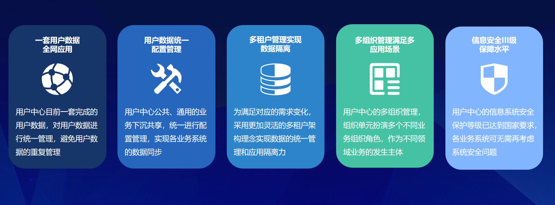 5. 满足应用需求:无论业务系统的需求如何,用户中心都可以提供相应的解决方案,帮助业务系统解决对用户中心的应用需求。