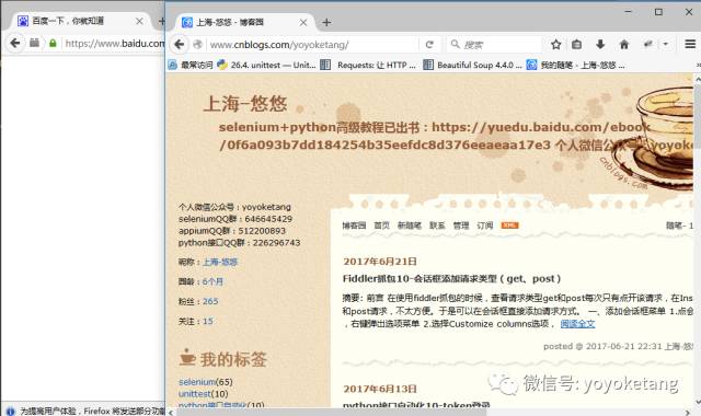 1.如果我想启动2个火狐,一个火狐打开百度,另外一个火狐打开博客园,我们只需用2个实例driver去控制就行
