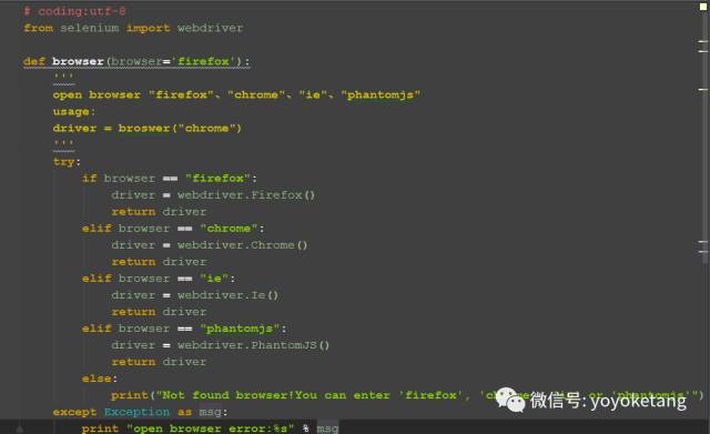 1.如果涉及到不同的浏览器(如Firefox、chrome)之间的切换,我们可以专门写一个函数去启动不同浏览器