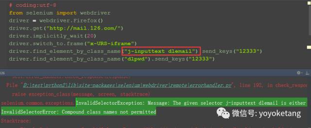 1.既然知道class属性有空格是多个属性了,那定位的时候取其中的一个就行(并且要唯一),也就是说class="j-inputtext dlemail",