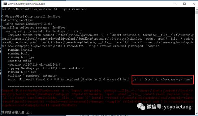 2.在安装的时候如果你出现上面保存,先别急着截图贴群求大神,上面已经告诉解决办法了:Get it from http://aka.ms/vcpython27