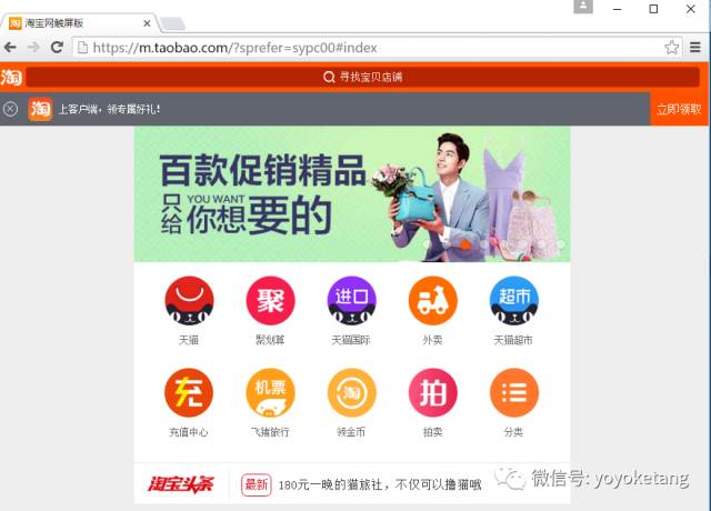 1.做Wap测试的可以试下,伪装成手机访问淘宝,会出现触屏版