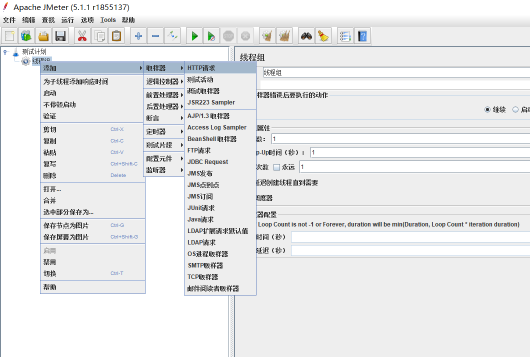 选中测试计划右击,选择添加-线程-添加线程组