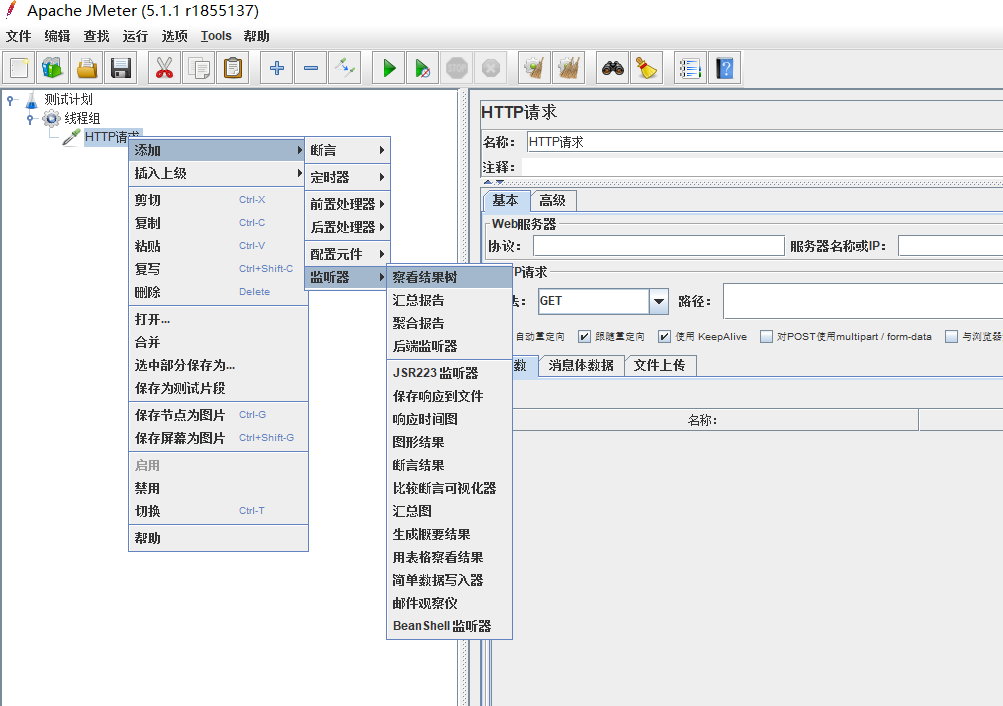 右击http-添加-监听器-添加察看结果树
