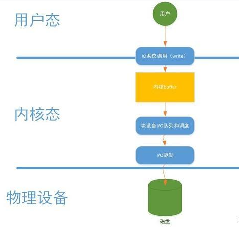 凡是通过直接I/O方式进行数据传输,数据直接从用户态地址空间写入到磁盘中,直接跳过内核缓冲区。对于一些应用程序,例如:数据库。他们更倾向于自己的缓存机制,这样可以提供更好的缓冲机制提高数据库的读写性能。直接I/O写操作如上图所示。