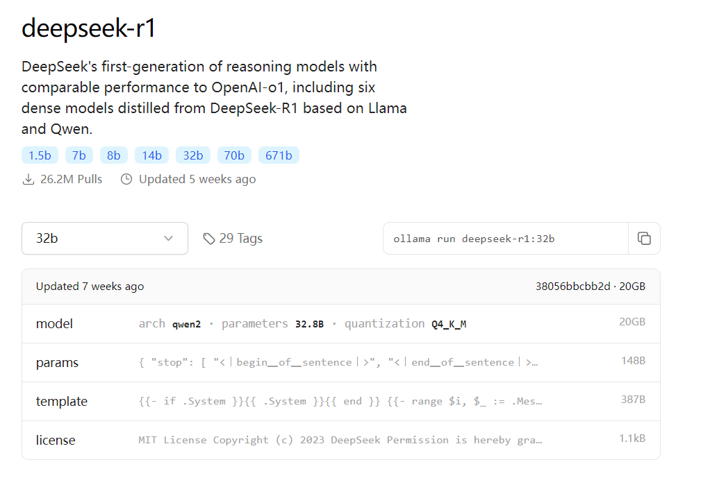 2.选择DeepSeek-R1大语音模型: https://ollama.com/library/deepseek-r1