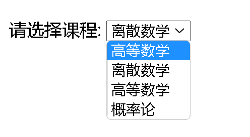 <option value="离散数学" selected>离散数学</option>