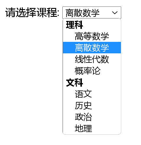 <!-- optgroup可以进行分组 label="理科"属性命名分组的标题 -->