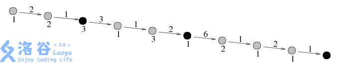 最后一颗树的 表示第 棵树到山脚的锯木厂的距离。保证所有树运到山脚的锯木厂所需要的费用小于 分。