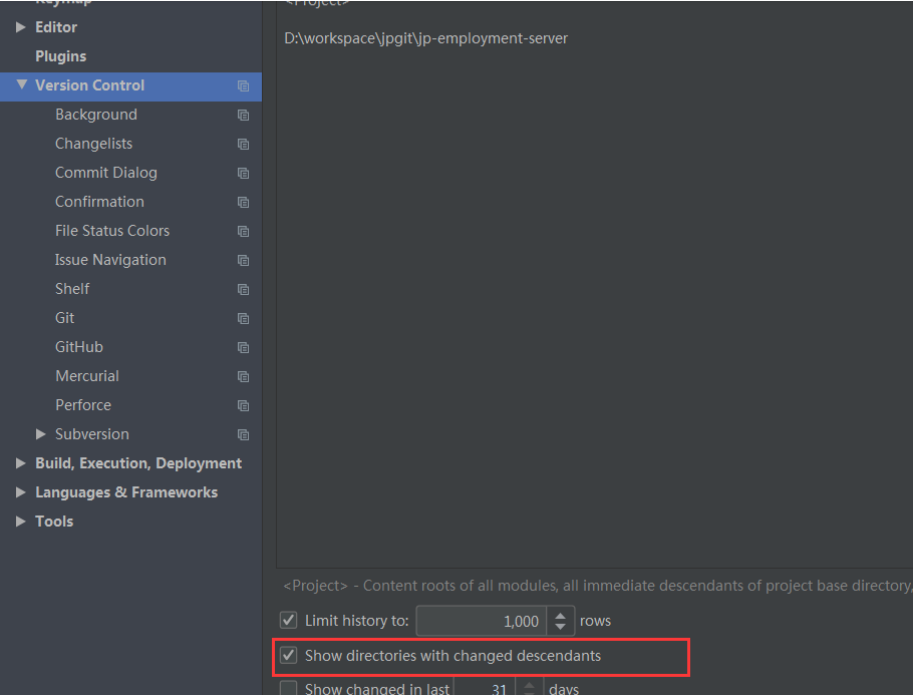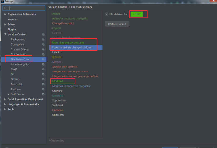 图示地方打上勾,表示被修改文件的父目录也标识颜色。