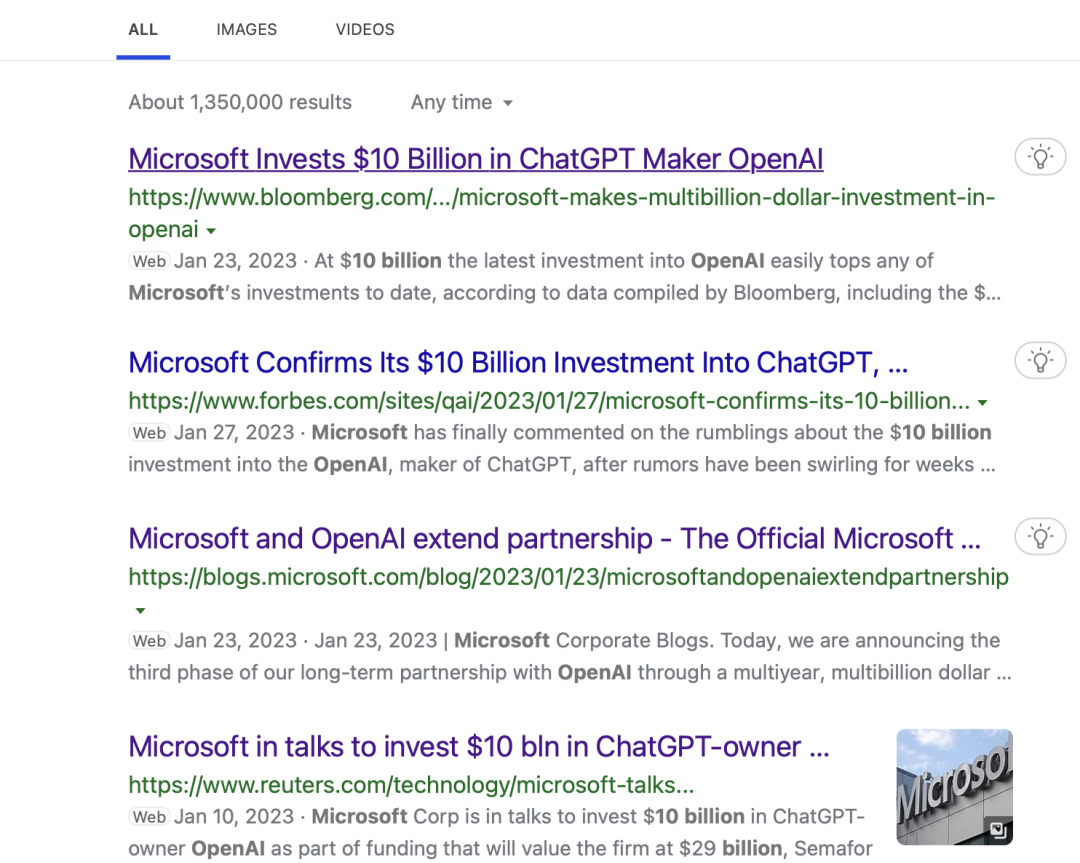 当然,微软投资Open AI的效益,现在大家也都看到了。