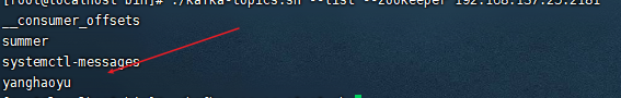 ./kafka-topics.sh --list --zookeeper 192.168.1.2:2181