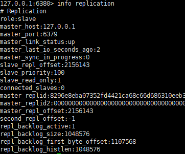 如果从主,从服务器看到与以下相似的配置信息。表示主从配置成功