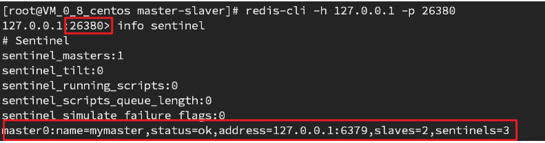 从任意服务器进入哨兵节点查看相关信息,输出一致即为正常