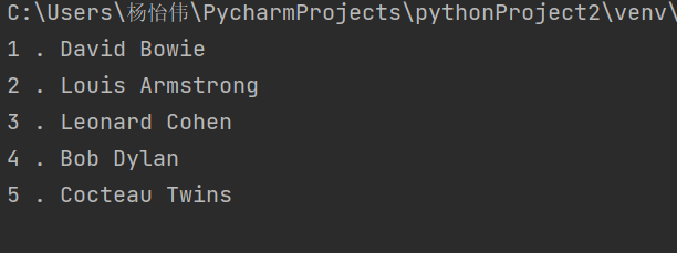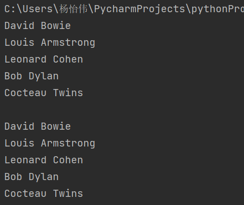 name_list=['david bowie','louis armstrong','leonard cohen','bob dylan','cocteau twins']