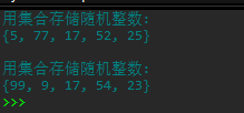 print('\n用集合存储随机整数: ')