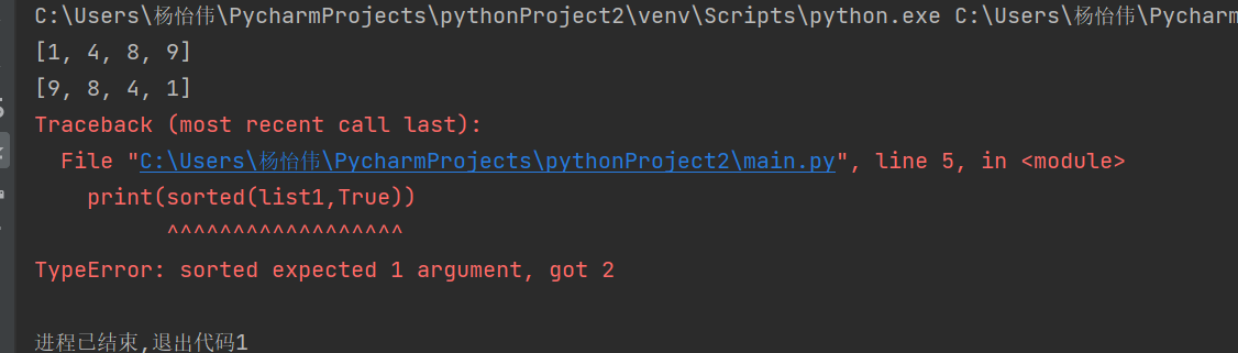 list1=[1,9,8,4] print(sorted(list1)) print(sorted(list1,reverse=True)) print(sorted(list1,True))