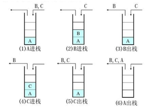 先进后出(即,存进去的元素,要在后它后面的元素依次取出后,才能取出该元素)。例如,子弹 压进弹夹,先压进去的子弹在下面,后压进去的子弹在上面,当开枪时,先弹出上面的子弹,然后 才能弹出下面的子弹。