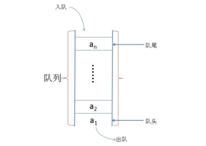 先进先出(即,存进去的元素,要在后它前面的元素依次取出后,才能取出该元素)。例如,小火 车过山洞,车头先进去,车尾后进去;车头先出来,车尾后出来。