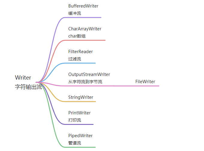 public abstract class Writer extends Object implements Appendable, Closeable, Flushable 用于写入字符流的抽象类