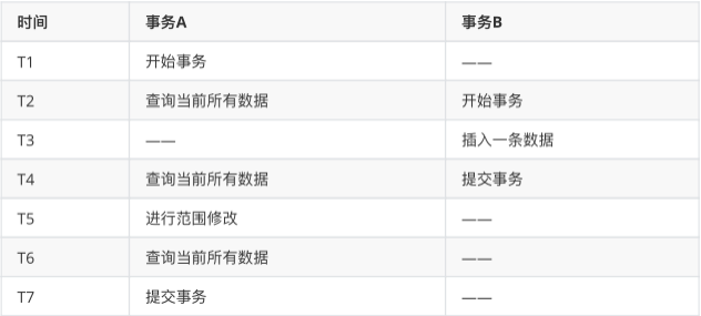 不可重复读:同⼀条命令返回不同的结果集(更新).事务 A 多次读取同一数据,事务 B 在事务A 多次读取的 过程中,对数据做了更新并提交,导致事务A多次读取同一数据时,结果不一致。