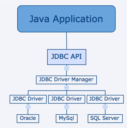 - JDBC API:这提供了应用程序到JDBC管理器连接。