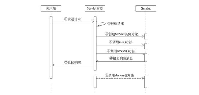(2) Servlet容器接收到客户端的请求,解析请求协议和数据,如果servlet程序还没有被加载,就会执行加载过程并调用service()方法,否则直接调用service()方法