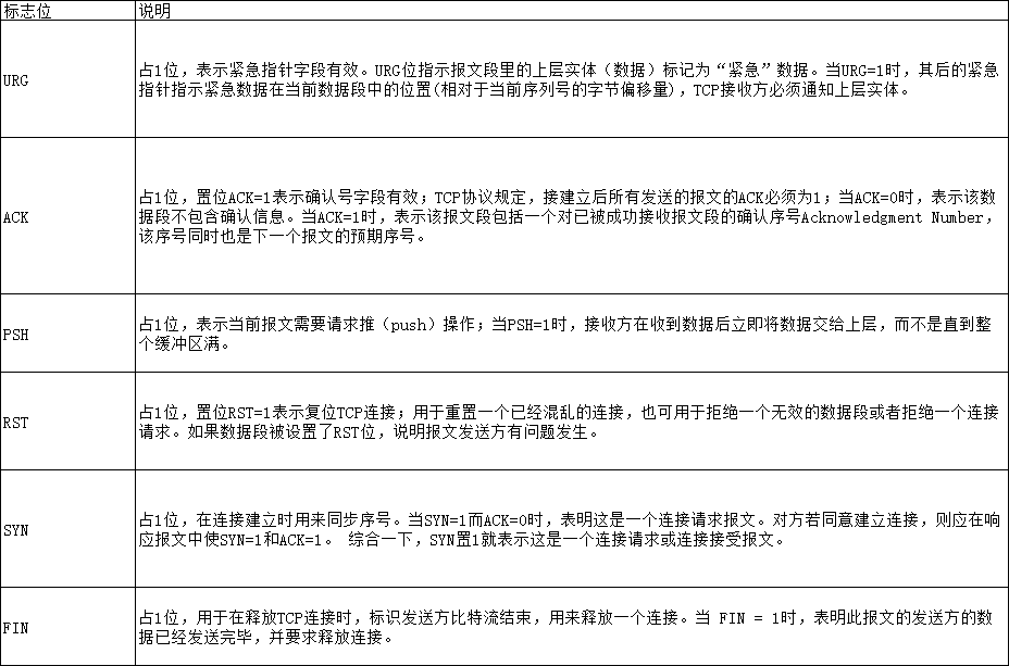 表:TCP报文控制标志(Control Bits)说明