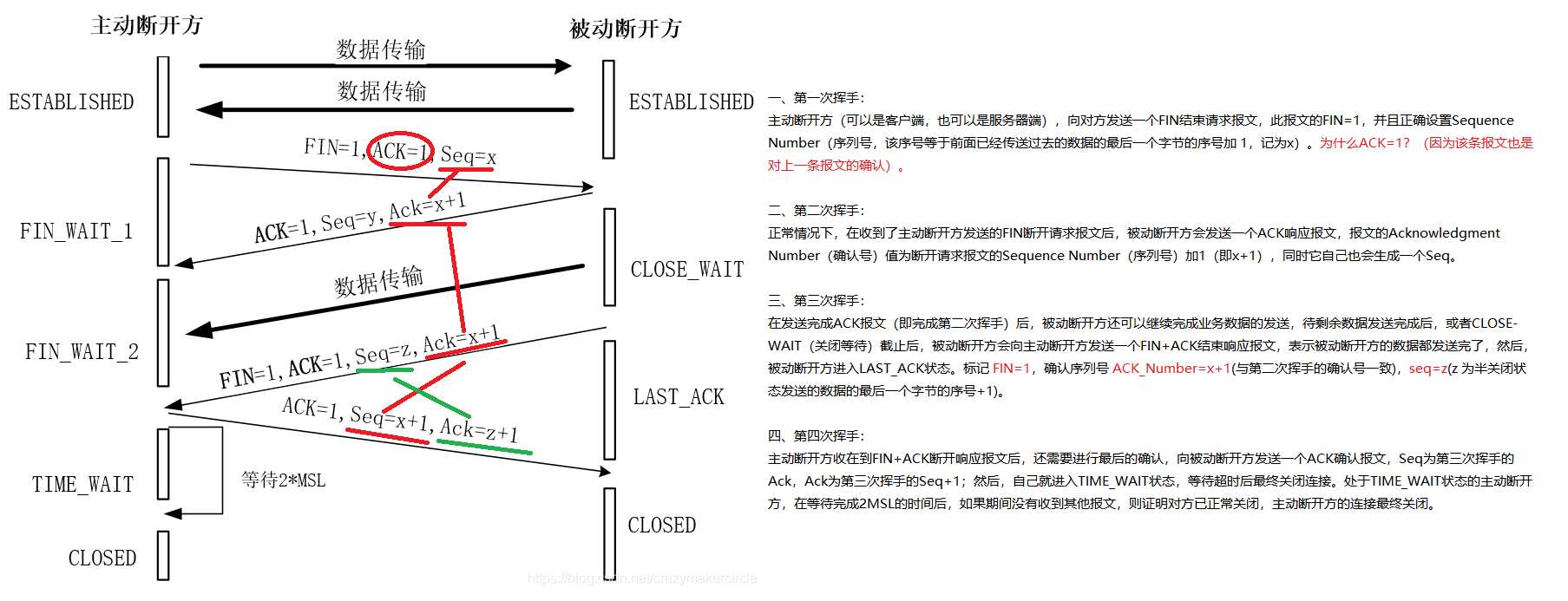 四次挥手的全部交互过程,具体如下图所示:
