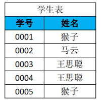 “成绩表” 记录了学生的学号,学生选修的课程,以及对应课程的成绩。