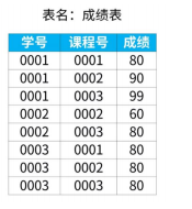 下面的成绩表,记录来每个学生选修课程的成绩。