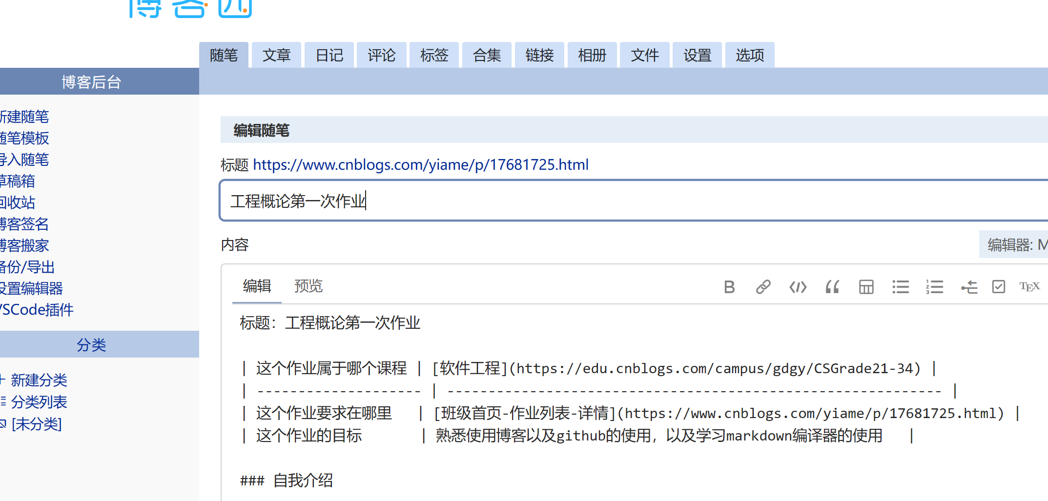 | 这个作业的目标 | 熟悉使用博客以及github的使用,以及学习markdown编译器的使用 |