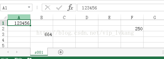 import xlsxwriter workbook = xlsxwriter.Workbook('G:\\xxoo\\103.xlsx') #在G盘xxoo文件下创建103的excel worksheet = workbook.add_worksheet('s001') #103的excel的sheet页名称为s001 worksheet.write(0,0,123456) worksheet.write(2,1,664) worksheet.write(1,5,250) #写入信息 workbook.close()